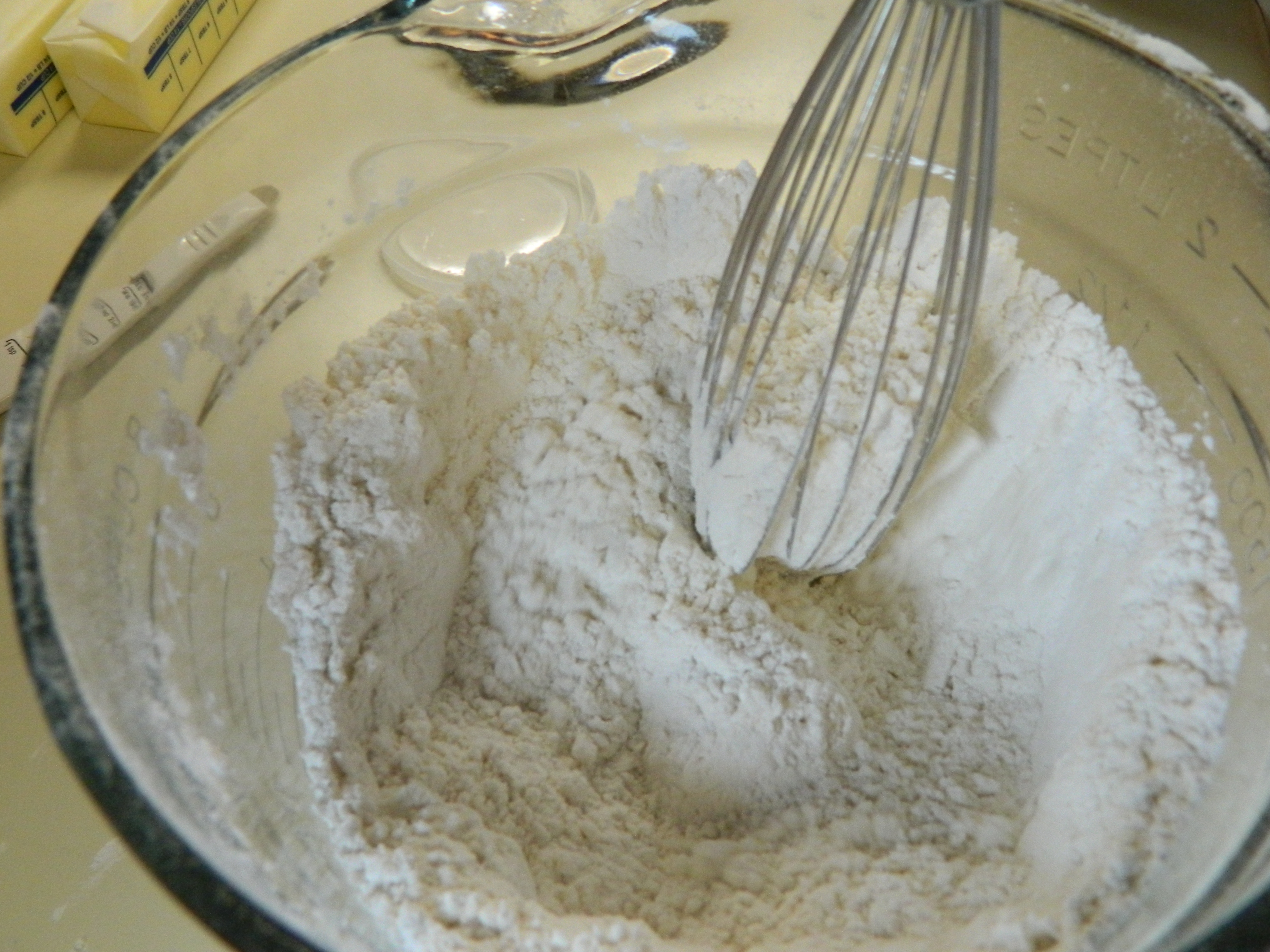 In a medium bowl combine flour, baking powder and salt.  Whisk together and set aside.