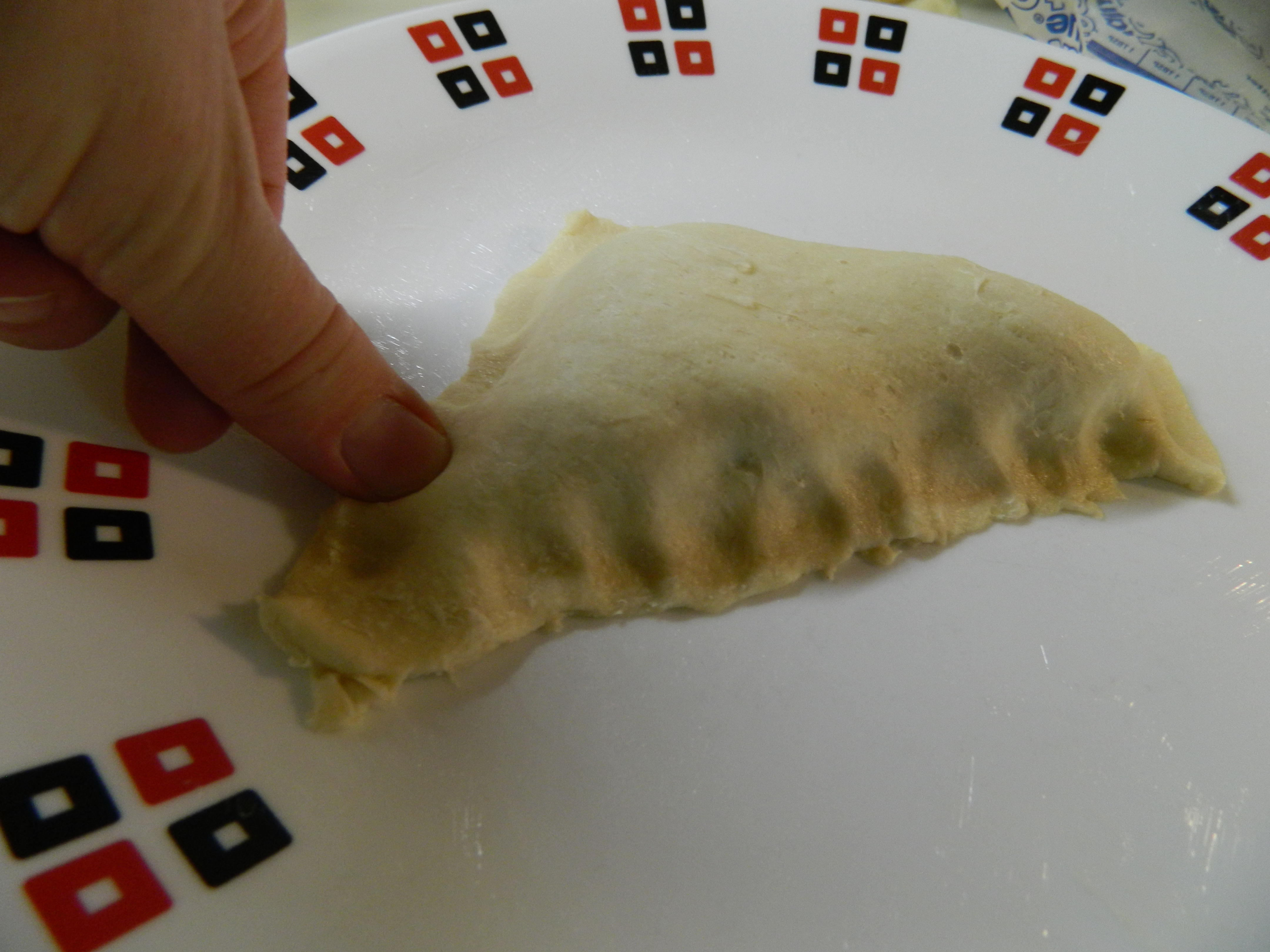 Cover apples with another crescent and press edges together to form a seal. Moisten with water around the edges to form a tighter seal if needed.