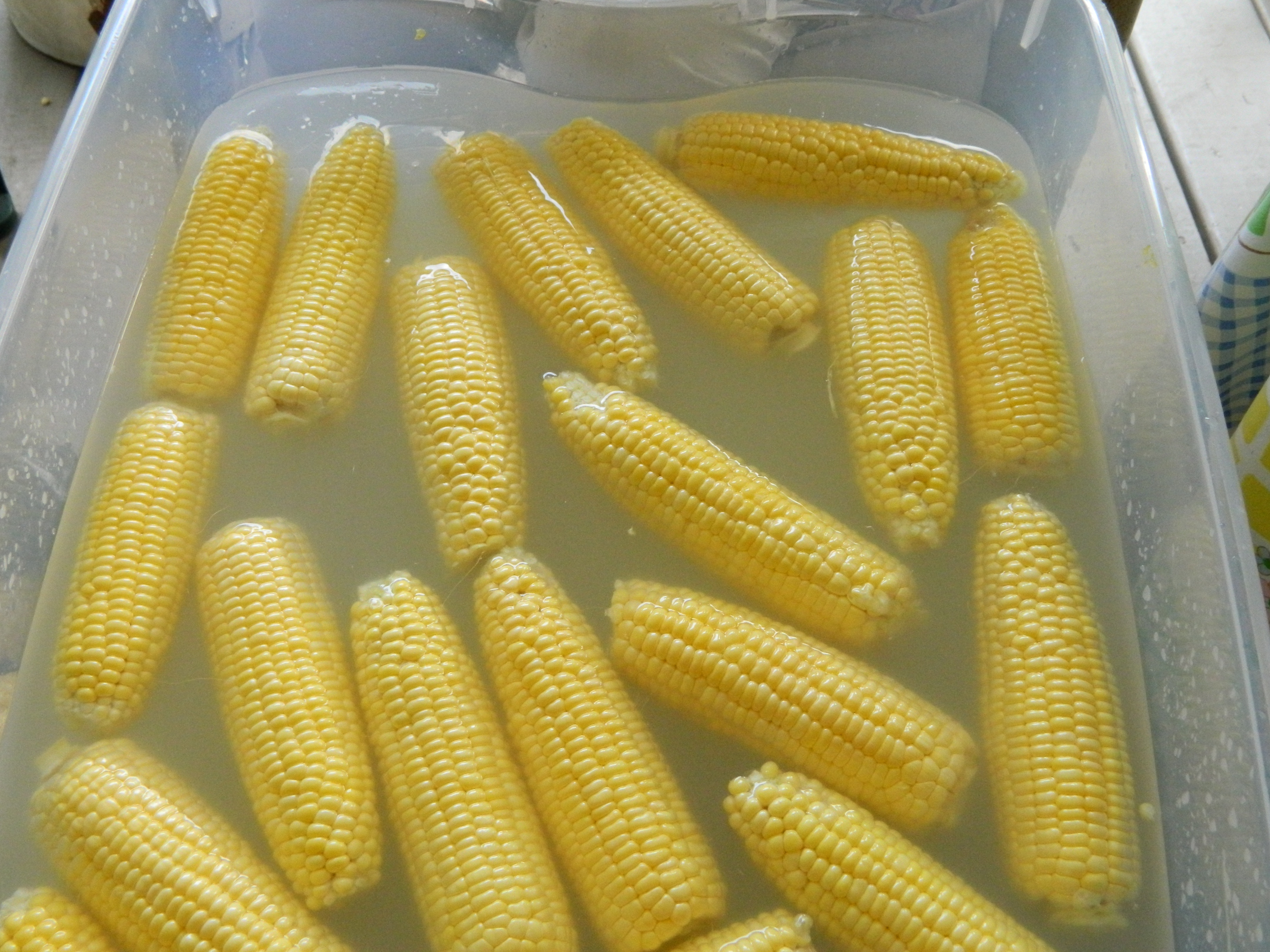 Have a clean tub of water ready for rinsing the corn right before you are ready to cut it off the cob.